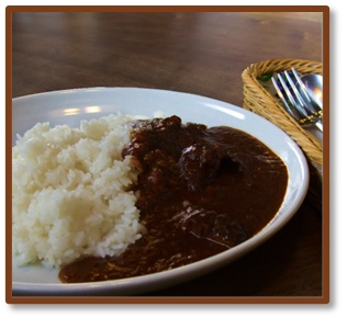 牛肉と野菜をたっぷり溶かし込んだカレーと 雑草手取りの無農薬米を八部づきにしたご飯。甘く辛い濃厚な味は、当店自慢のメニューです。